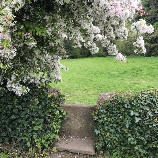 Footpath near our home leading into the Ox field as it's called. I've always loved the old stone steps to climb into the field . Even more lovely surrounded by blossom, it gives you such a lift, knowing the Spring is finally here!