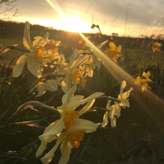 The clocks have changed, the evenings are longer and there's colour everywhere to be seen . So lovely to get out for a stroll in the evening light amid wild daffodils at sunset.