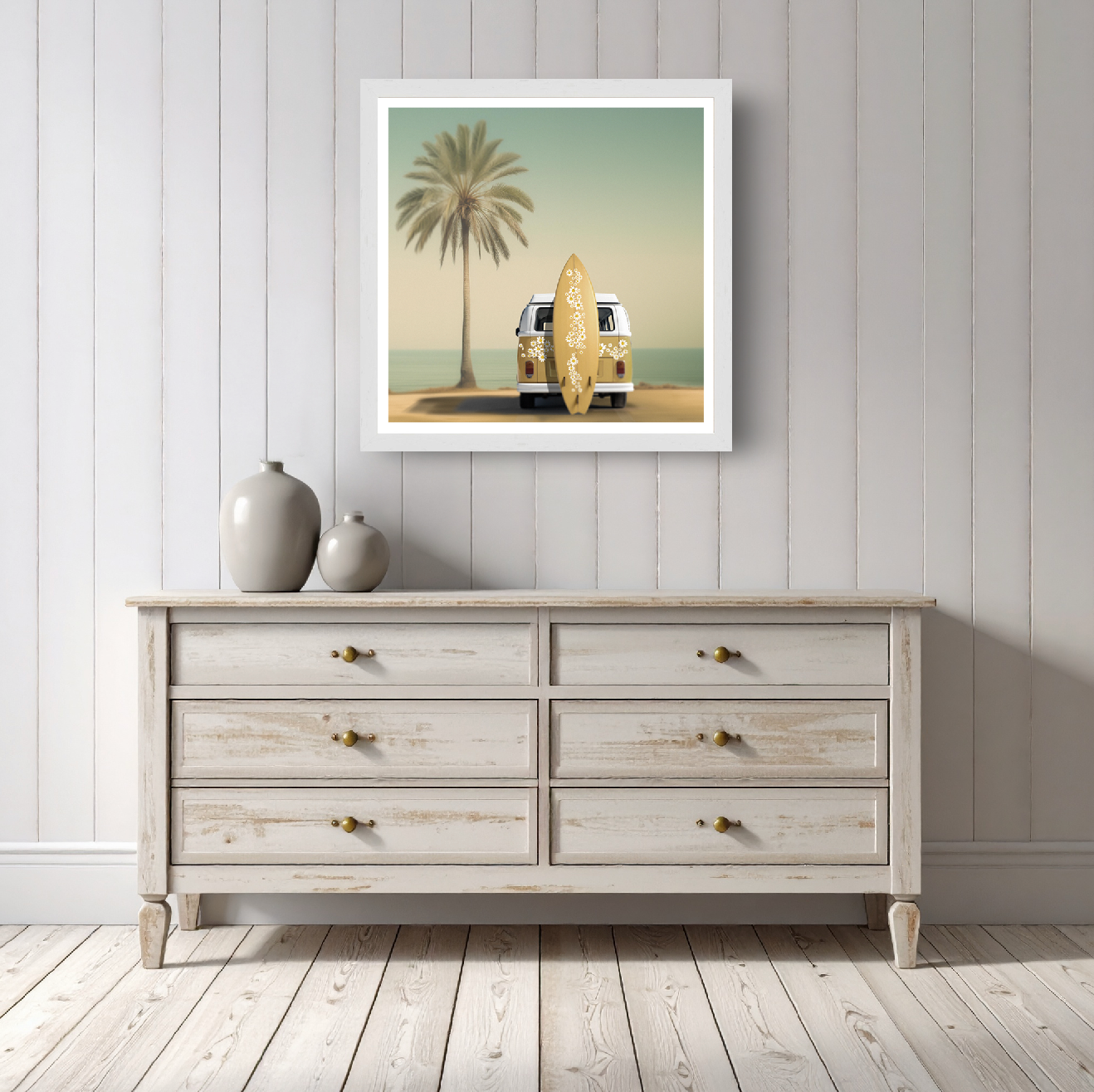 Endless summer days, salty seas and sand between your toes. Patiently waiting for the next big swell to ride in on those foamy waves. These colourful pastel prints look good on any wall in the house. Particularly good for bathrooms, bedrooms and sitting rooms. In washed out soft aqua colours with faded pinks, yellows, light greens and pale blues, these prints form a little series which is both soothing and restful to look at. They work well as prints only, or with any of our four frame colours. Buy one, or match them up in a little series to brighten up your walls for summer and beyond.