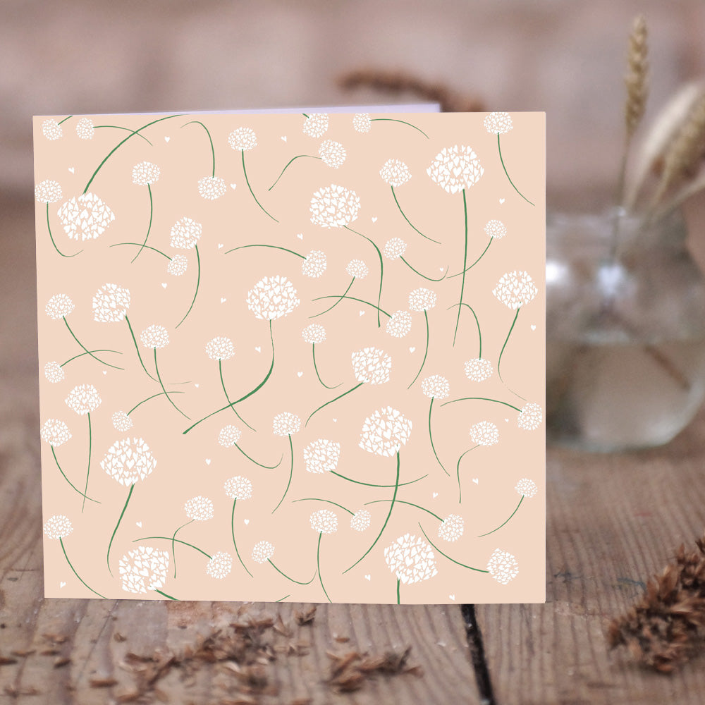 Printed on 350gsm uncoated white card with a plain white envelope and cello wrapped.